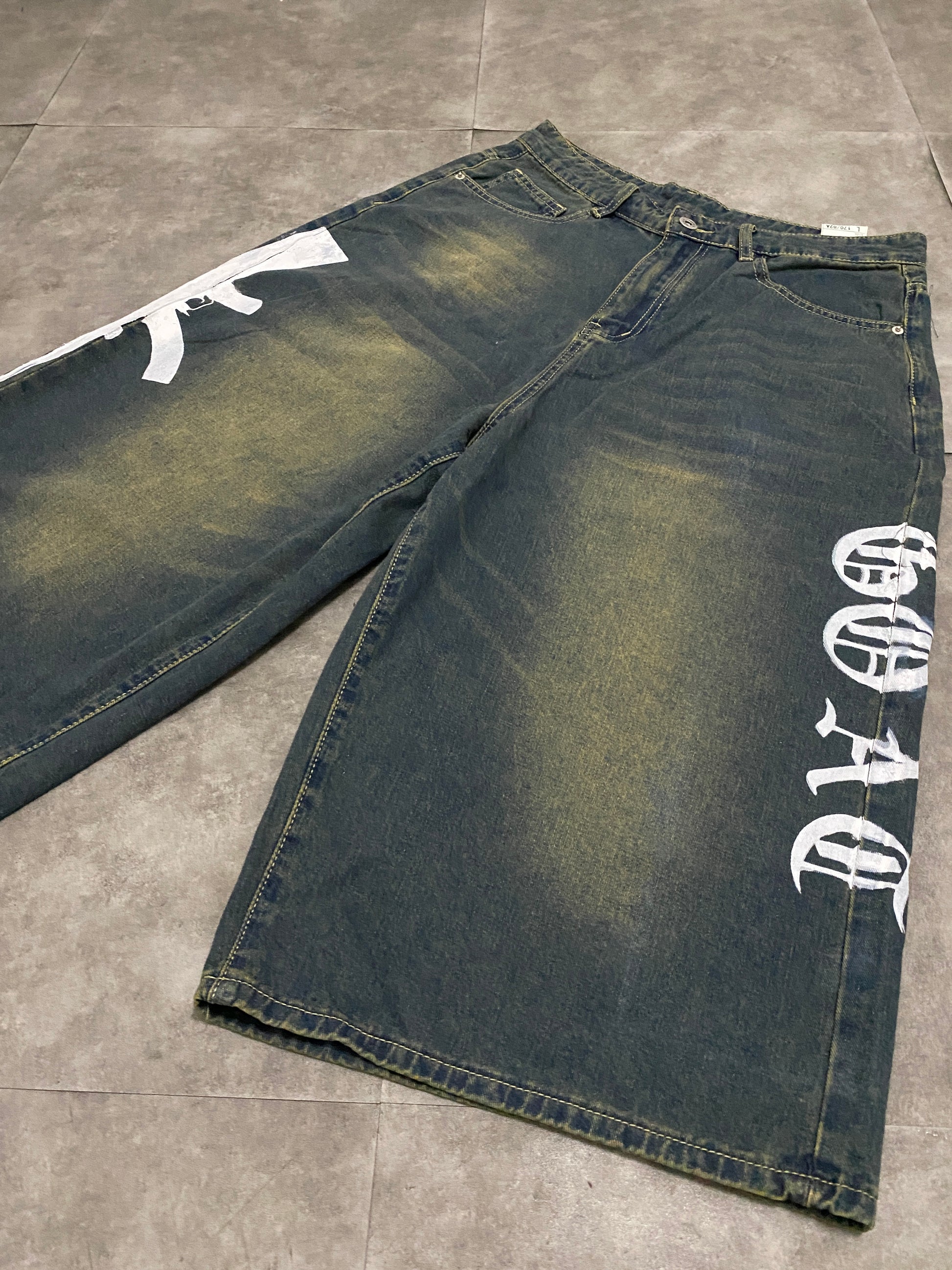 Pantalón 3/4 único talle L, diseño tipo goat por un lado y rifle taliban ak-47 por otro